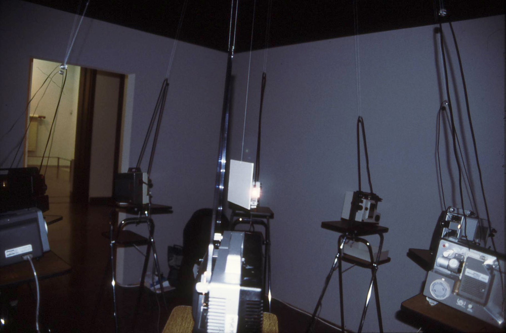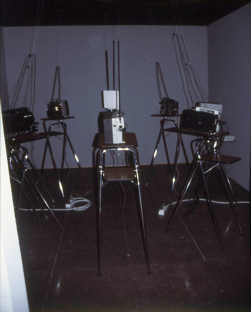 Unsigning Eight Projector PeiceLisbon 2001Restaged for Live in Your Head, Lisbon. more information The Super 8mm projectors were borrowed from a museum, and this manifestation of the work foregrounded the use of outdated technology.