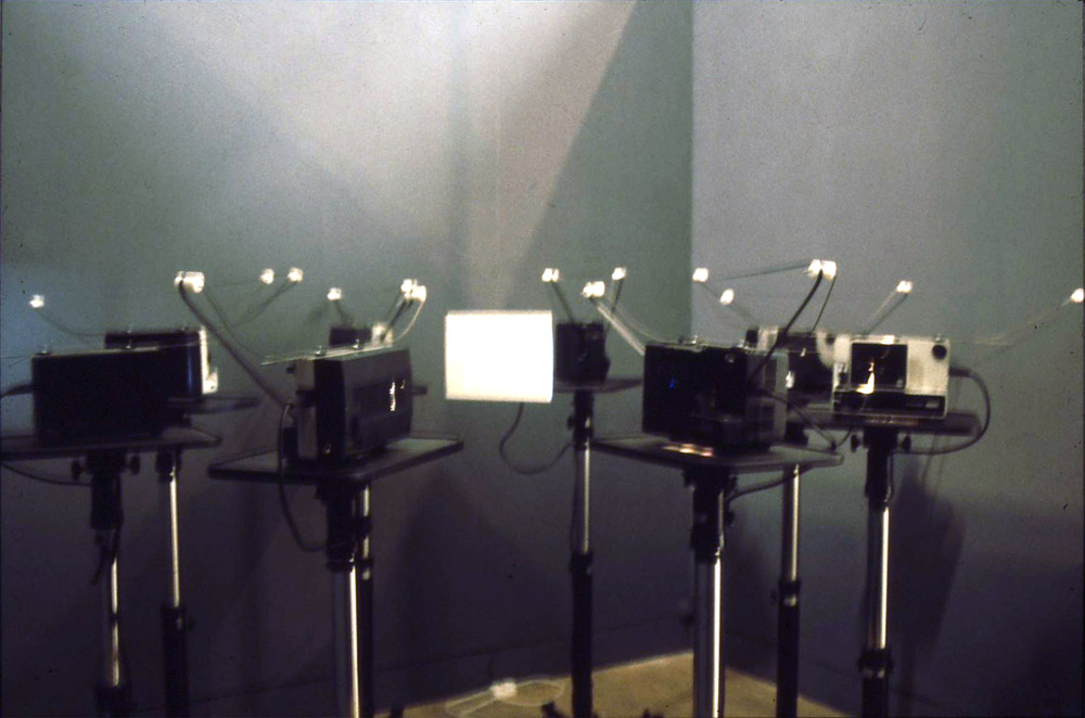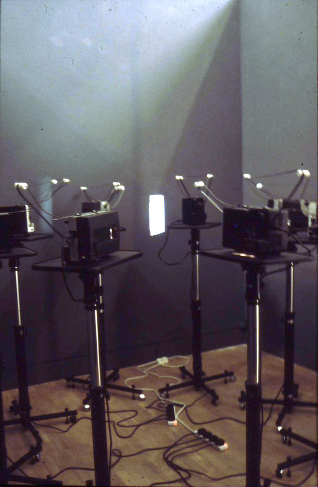 The original Unsigning for Eight Projectors 1972, was restaged for this large survey of art. subtitled Concept and Experiment in Britain 1965-1975.